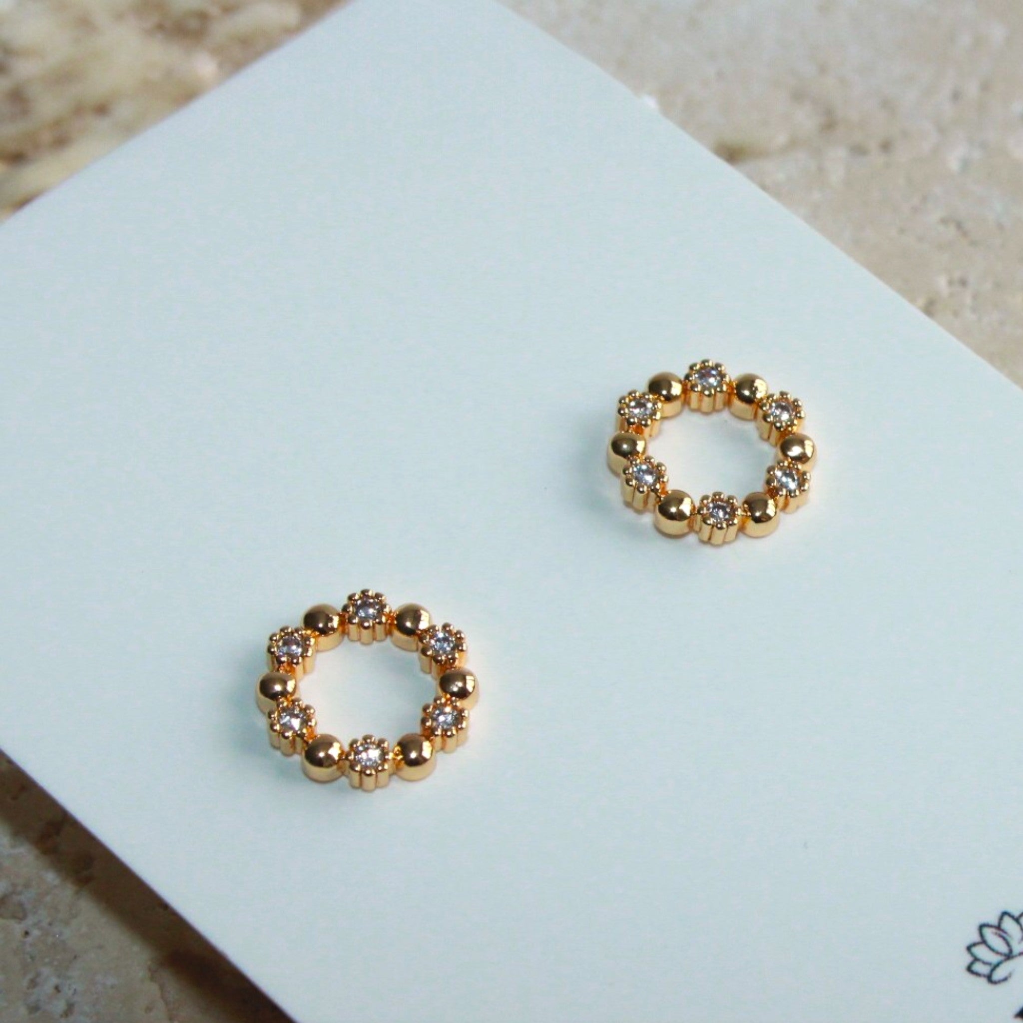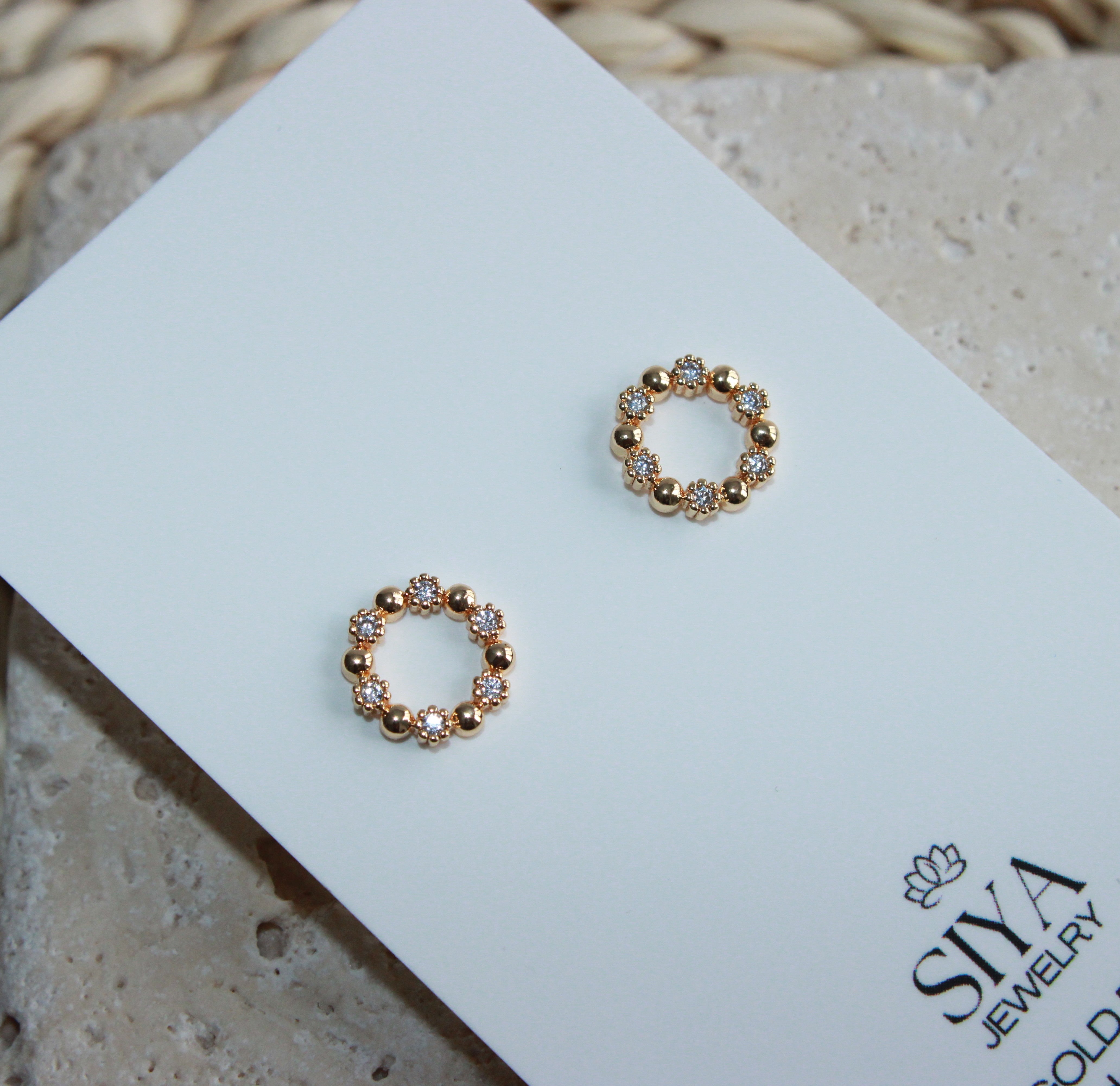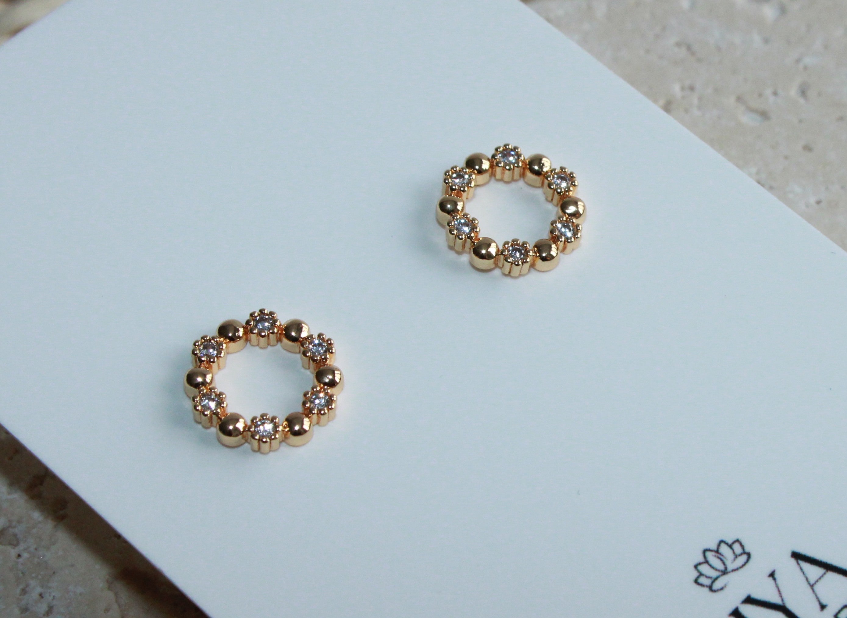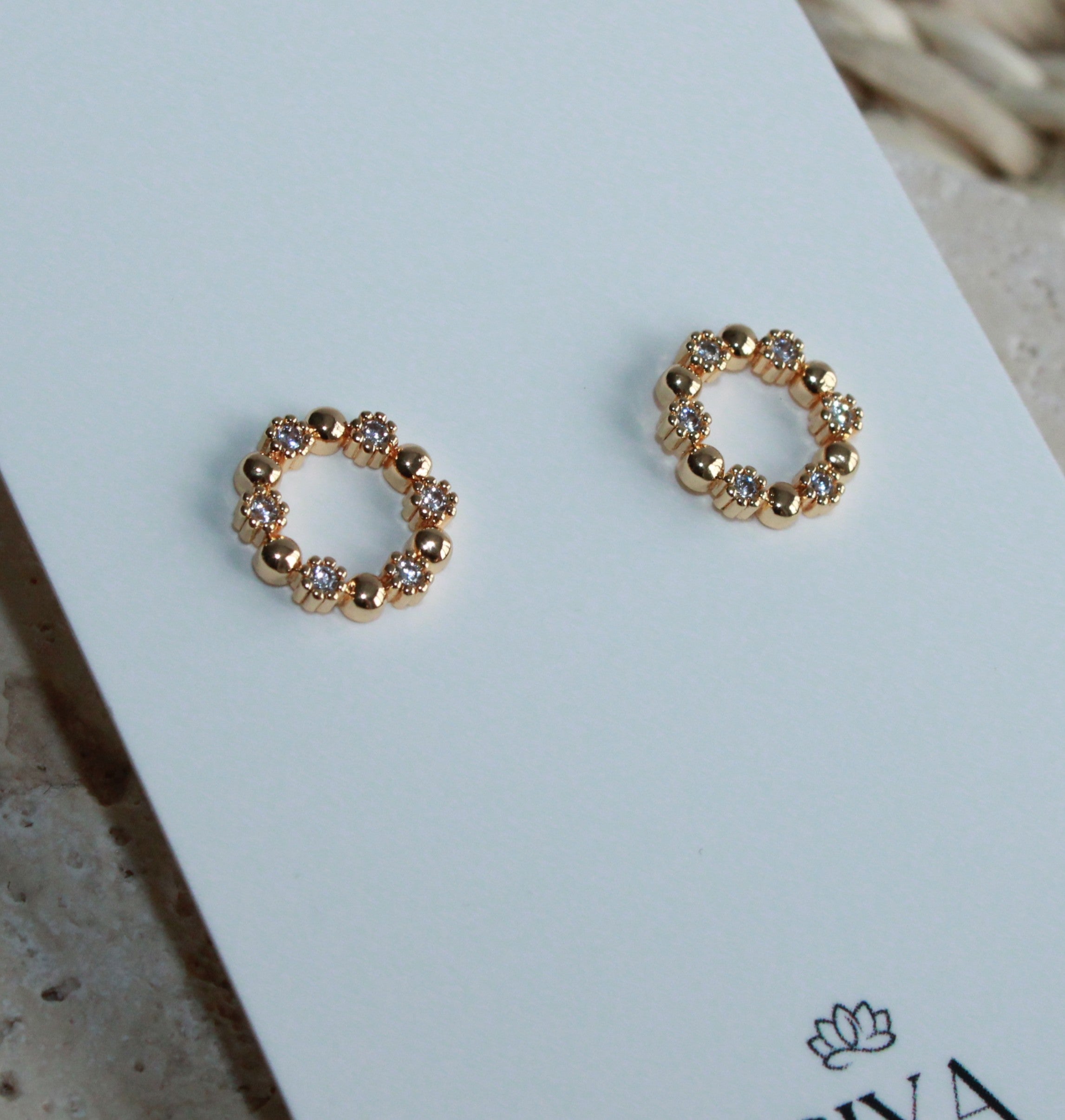 Petal line glow stud earring with small shaped CZ,  gold-plated for all-day wear. Lightweight and elegant, they add a subtle touch of sophistication to any outfit while keeping your ears happy.