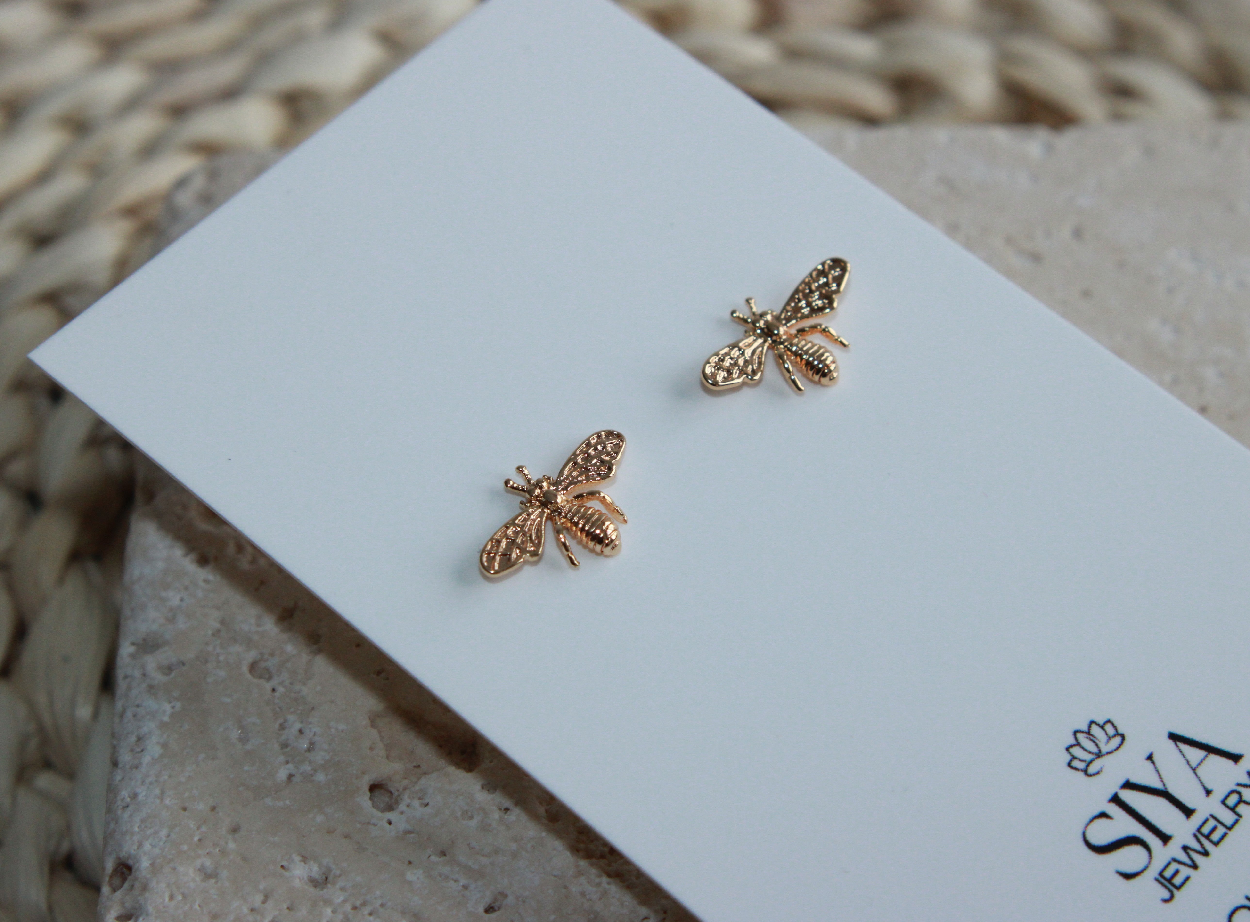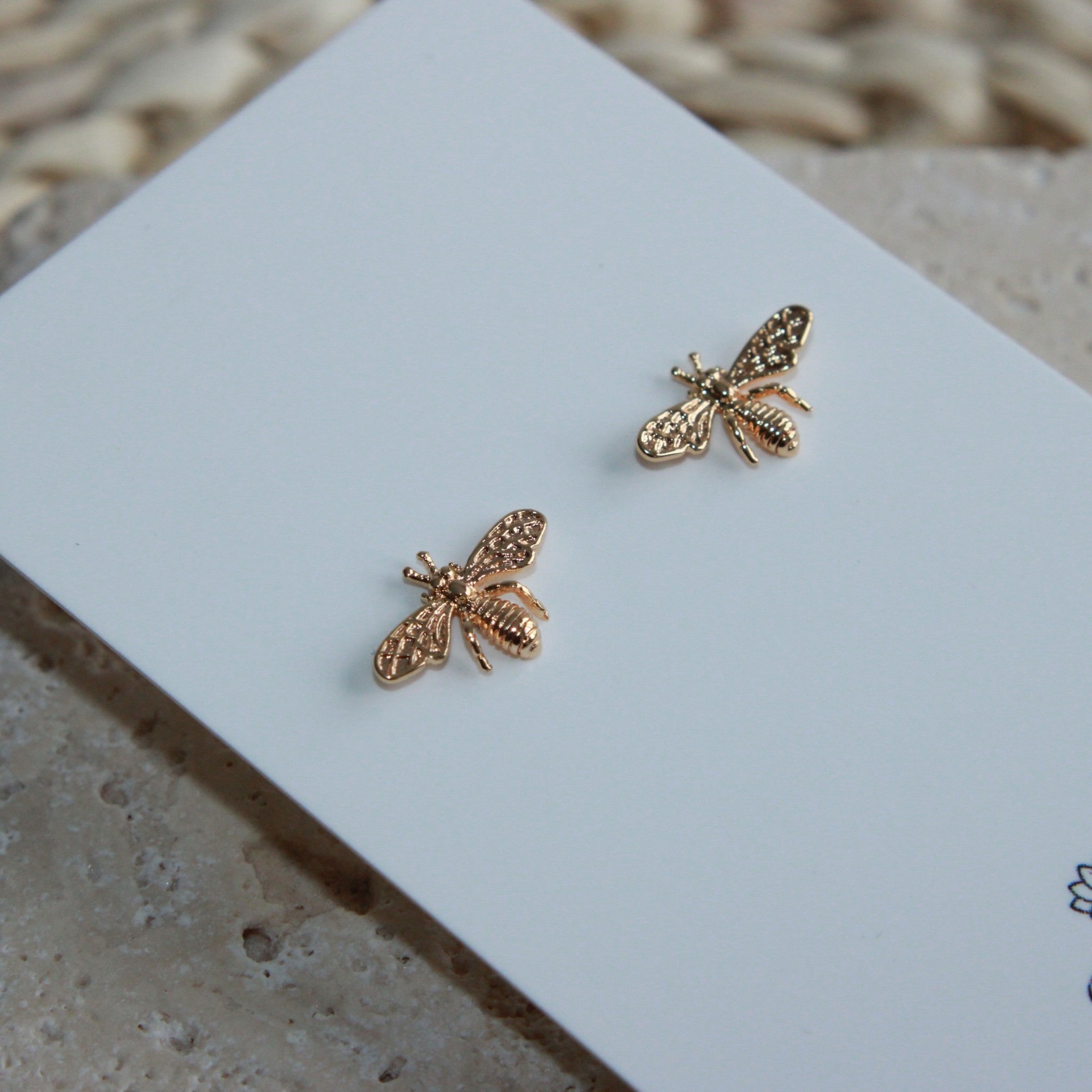 Mini bee stud earring, gold-plated for all-day wear. Lightweight and elegant, they add a subtle touch of sophistication to any outfit while keeping your ears happy.