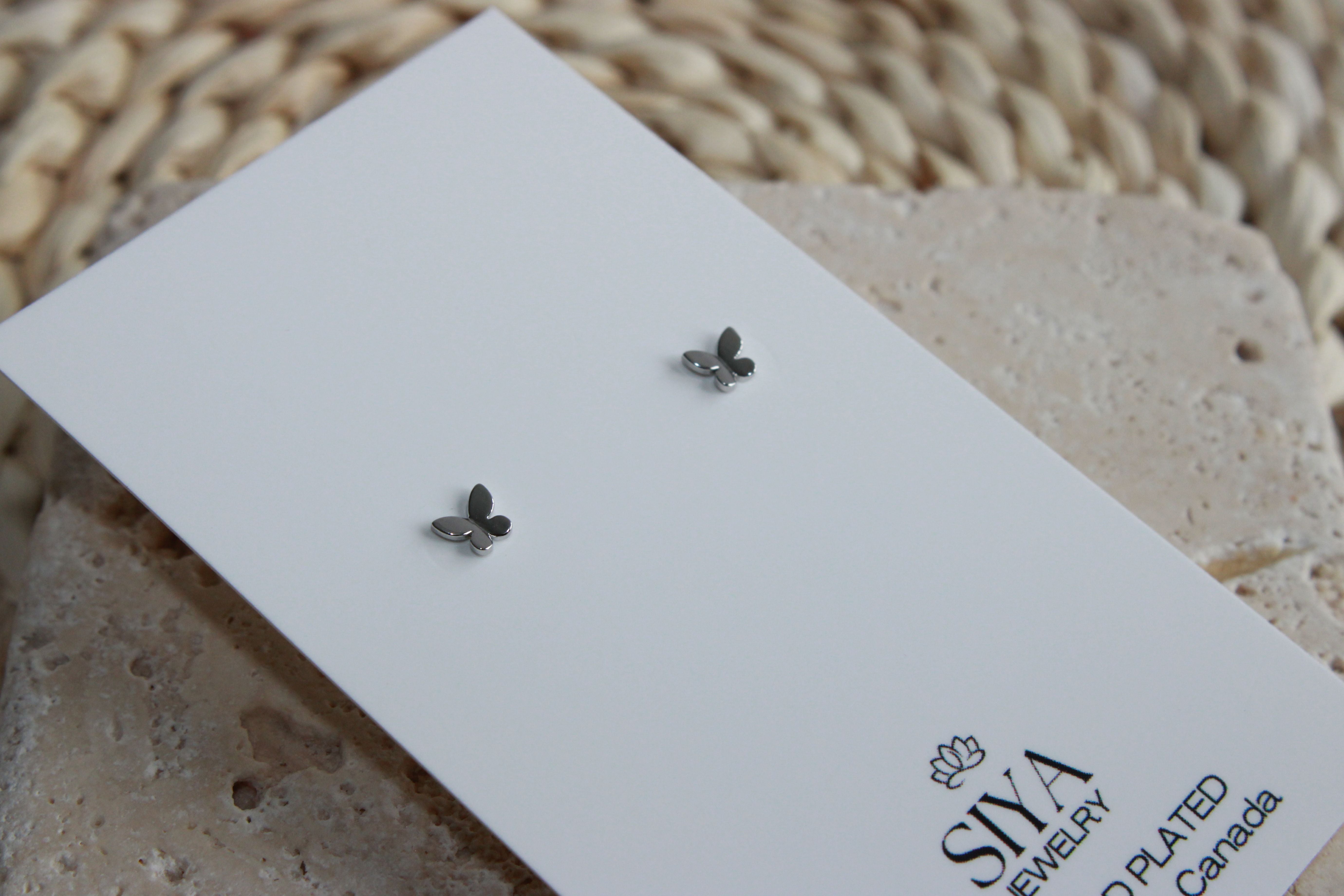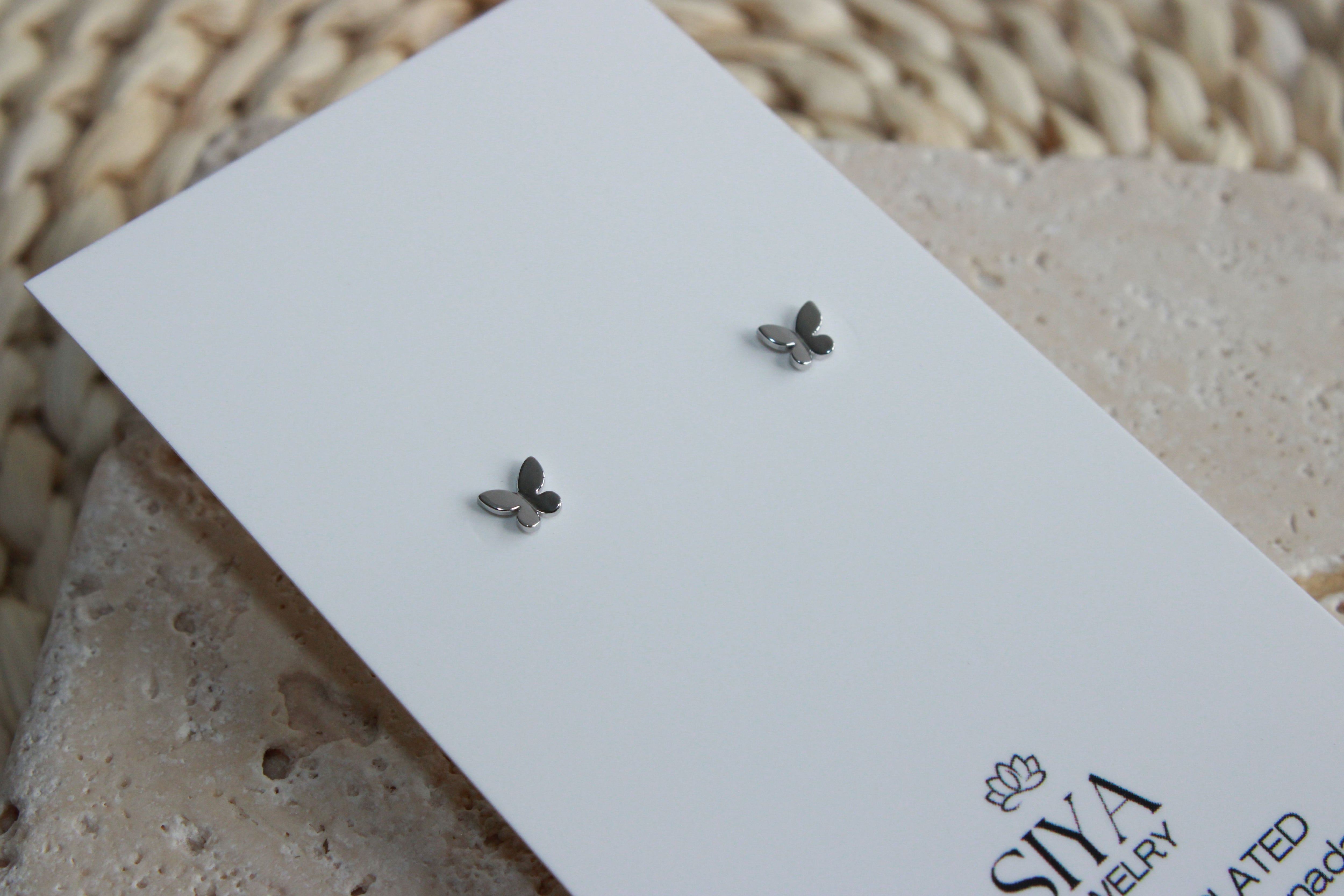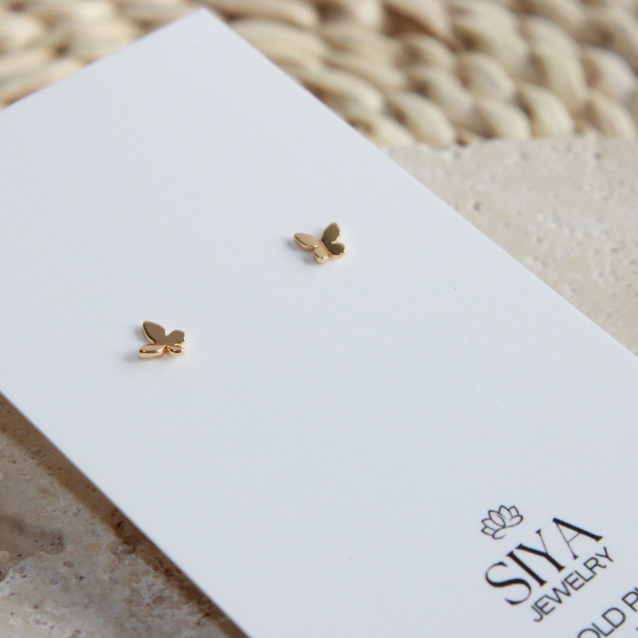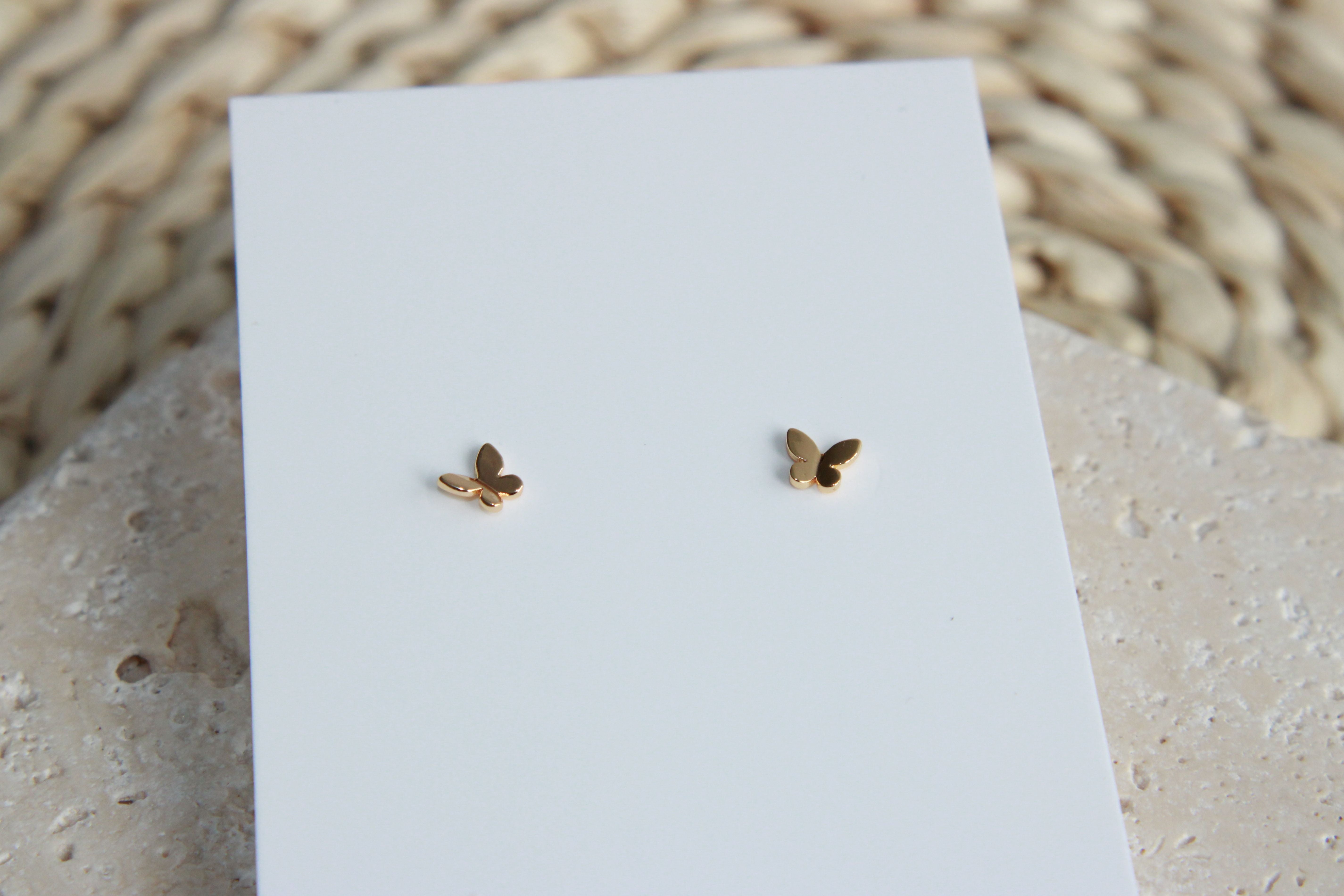 Mini butterfly stud earring, gold-plated for all-day wear. Lightweight and elegant, they add a subtle touch of sophistication to any outfit while keeping your ears happy.