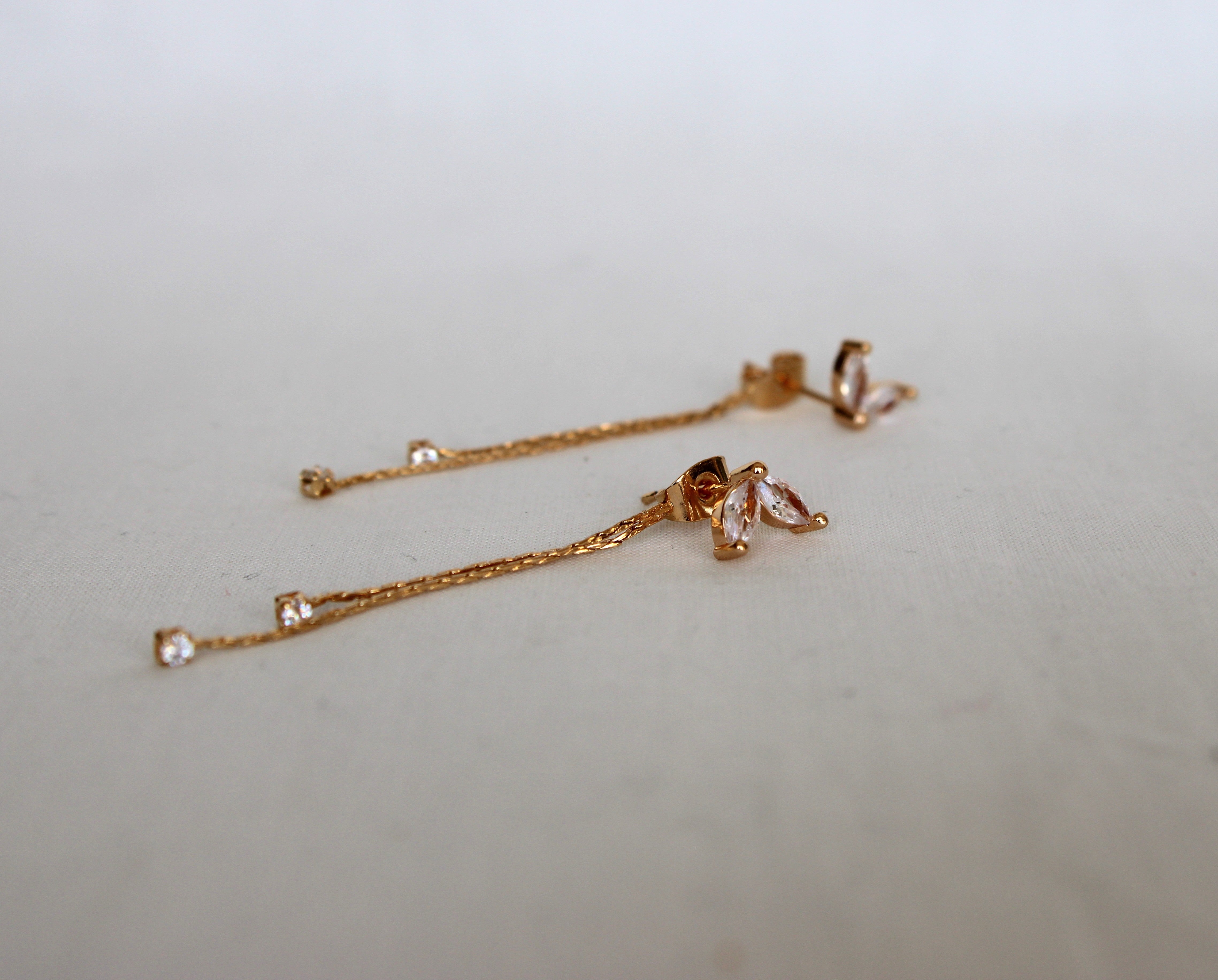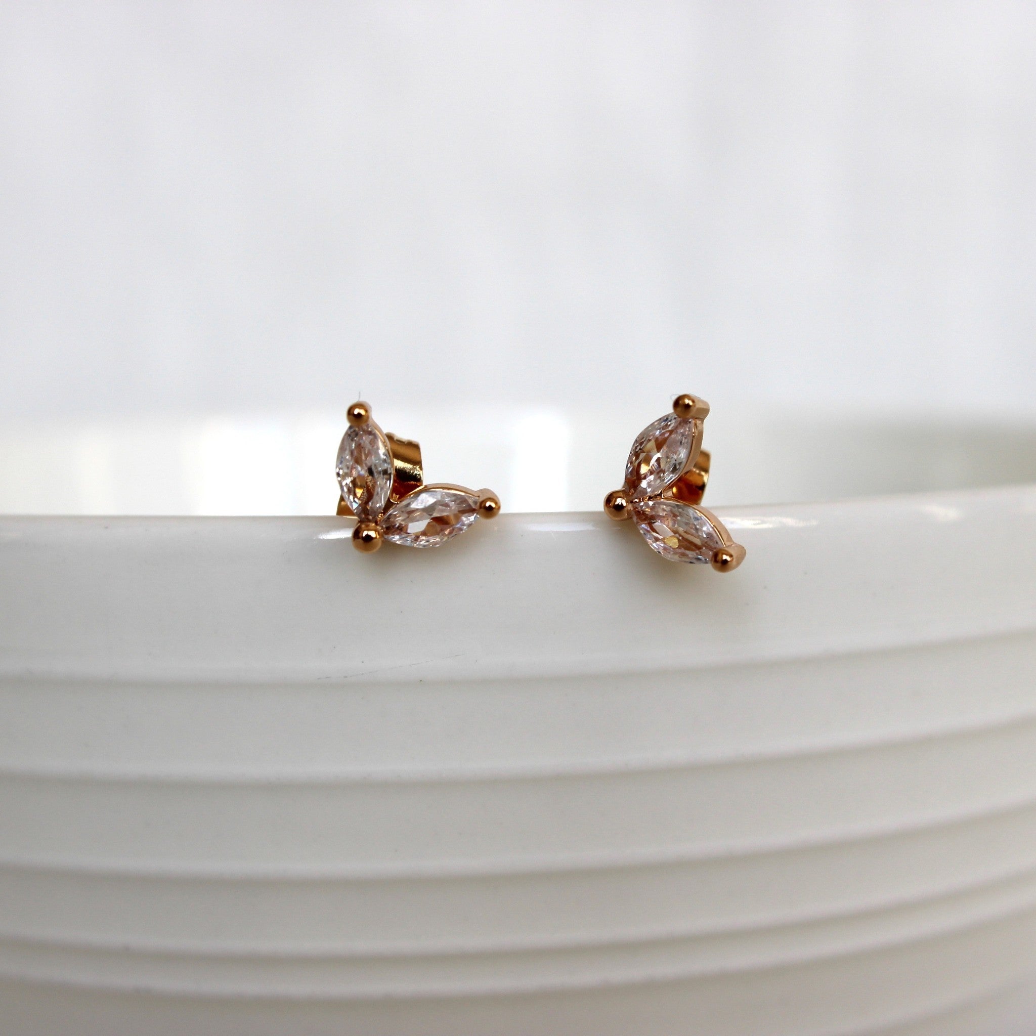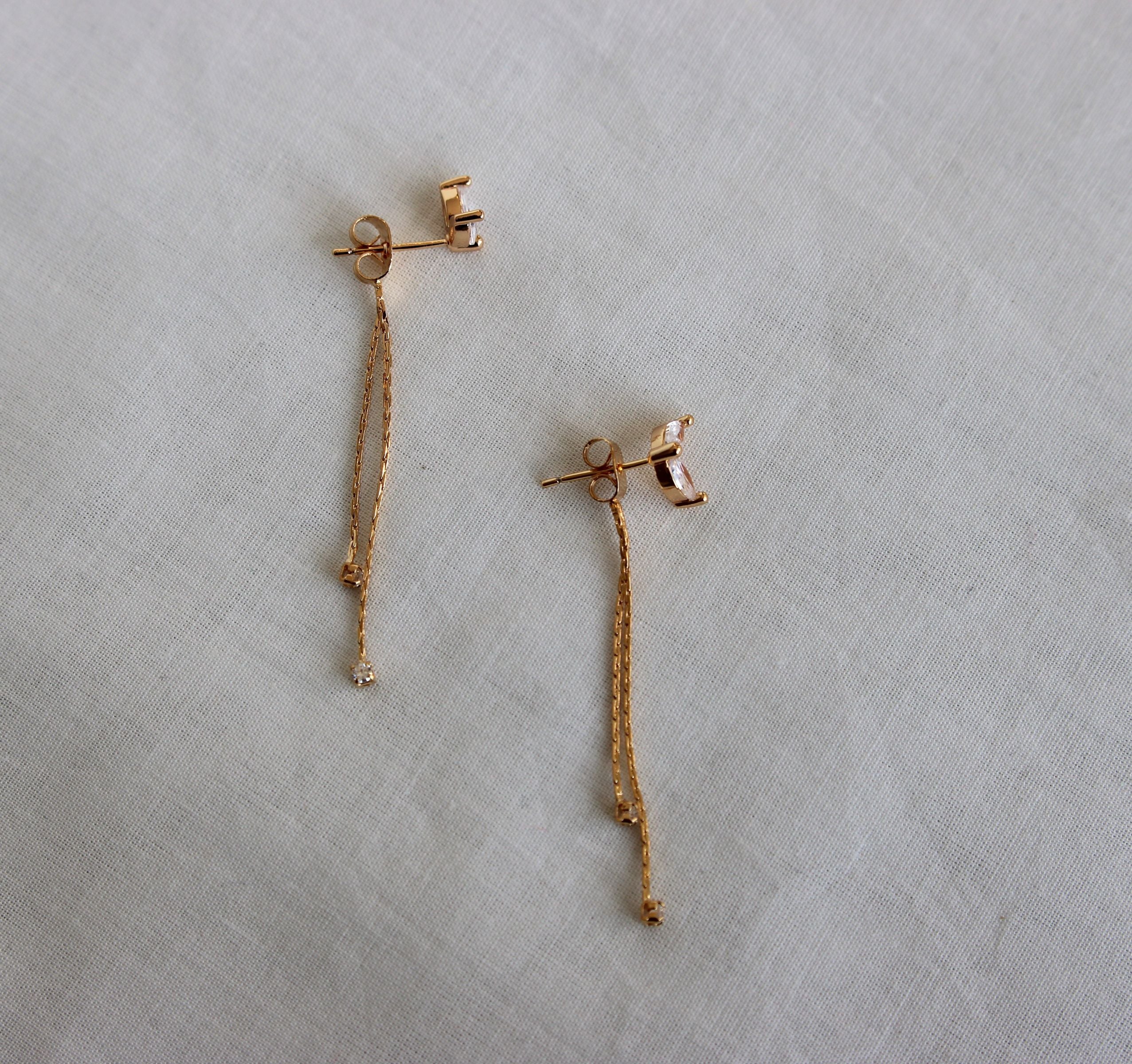 This mini petal CZ stud comes with a chain ear nut and plain ear nuts — you can choose to style it either with the chain nut or without. Gold-plated for all-day wear, these lightweight and elegant earrings add a subtle touch of sophistication to any outfit while keeping your ears comfortable.